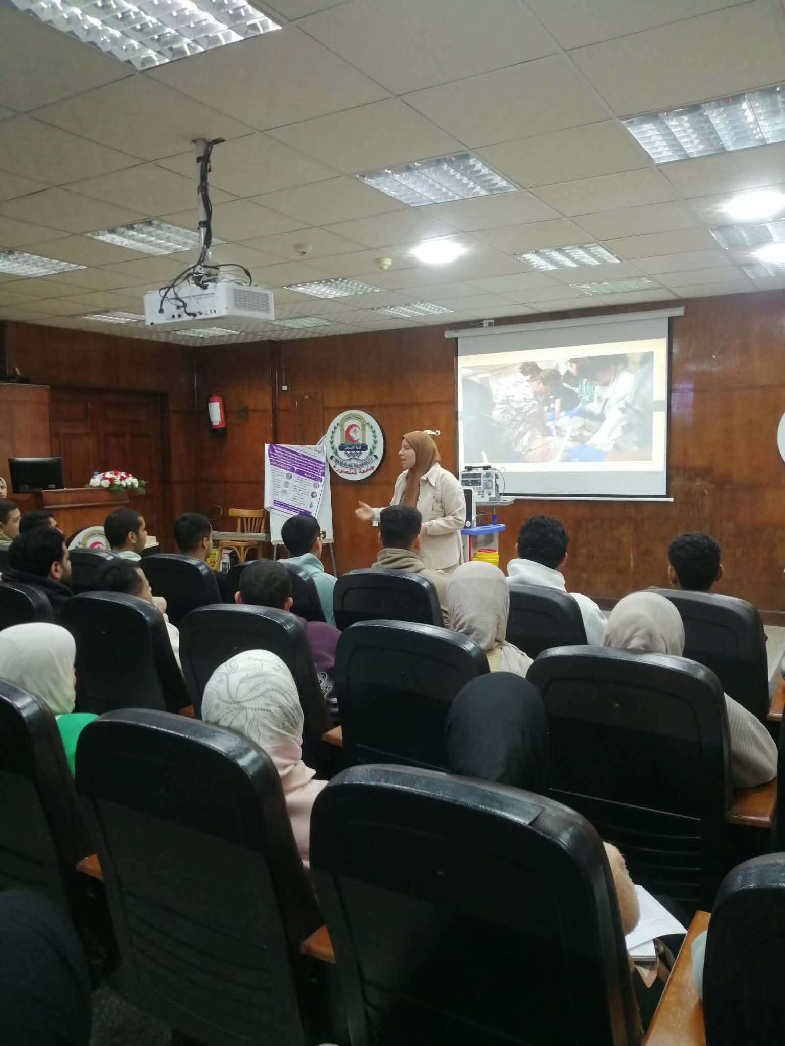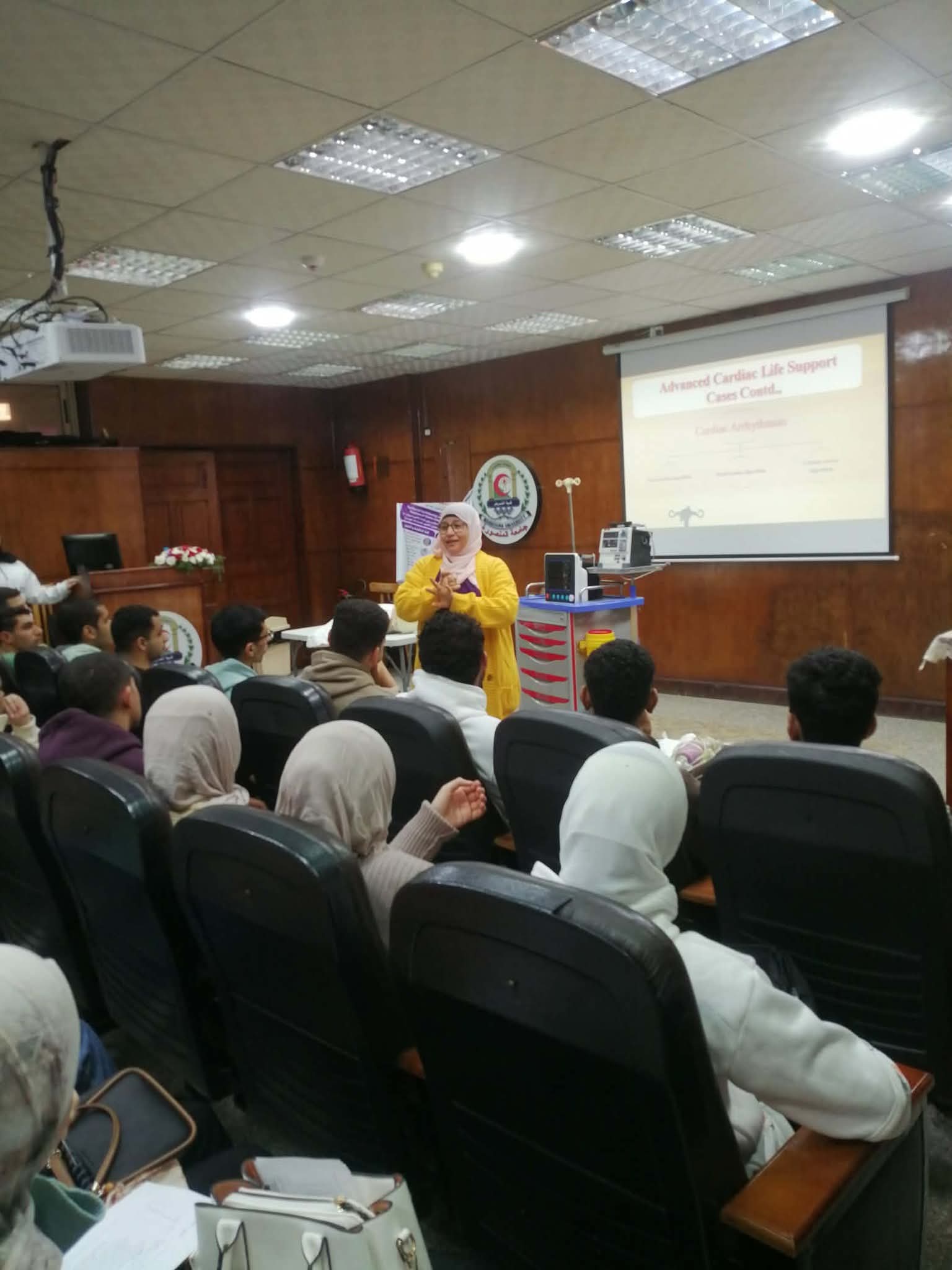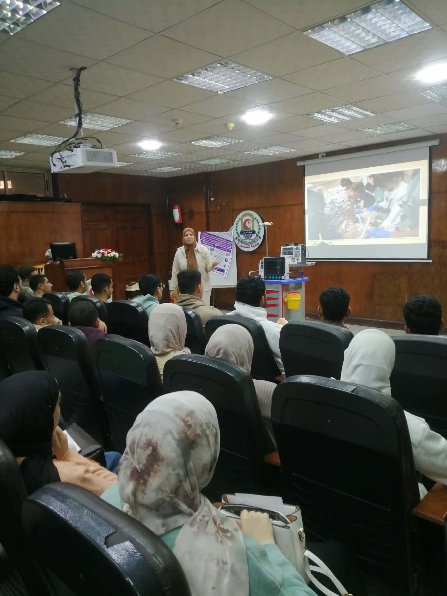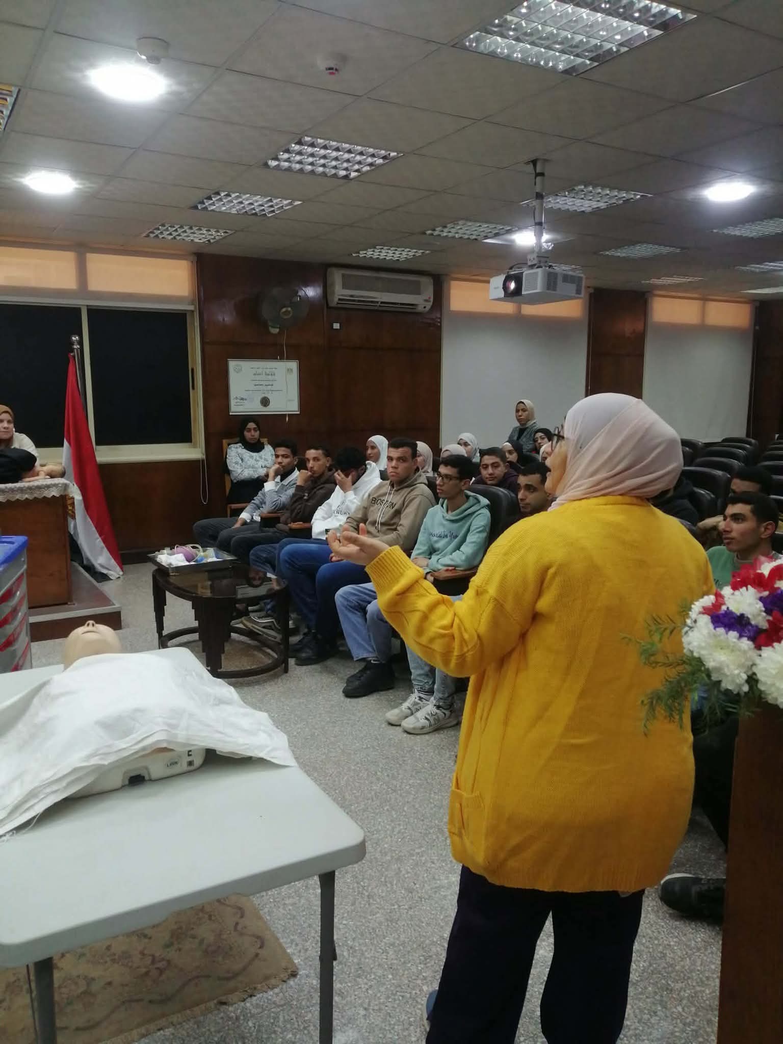 تم عقد برنامج تدريبي عن الاسعافات الاوليه لمجموعة من الطلاب و الخريجين بقاعة المؤتمرات بالكلية وتم التدريب علي الانعاش القلبي الرئوي