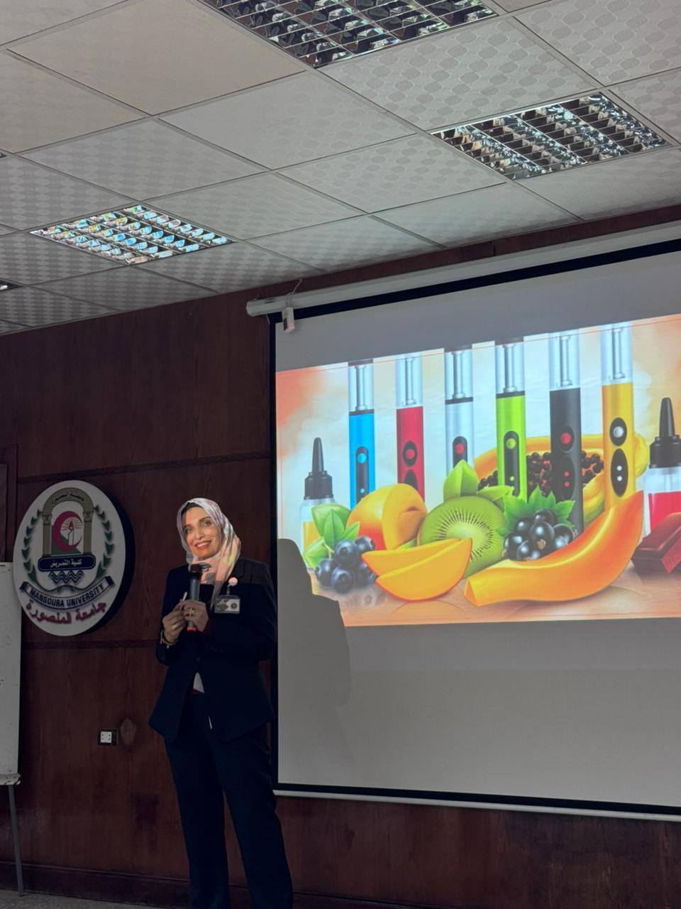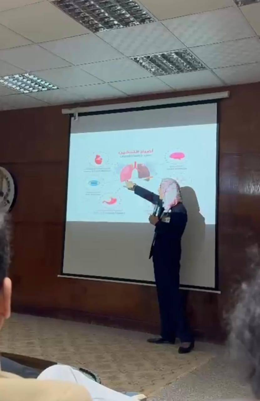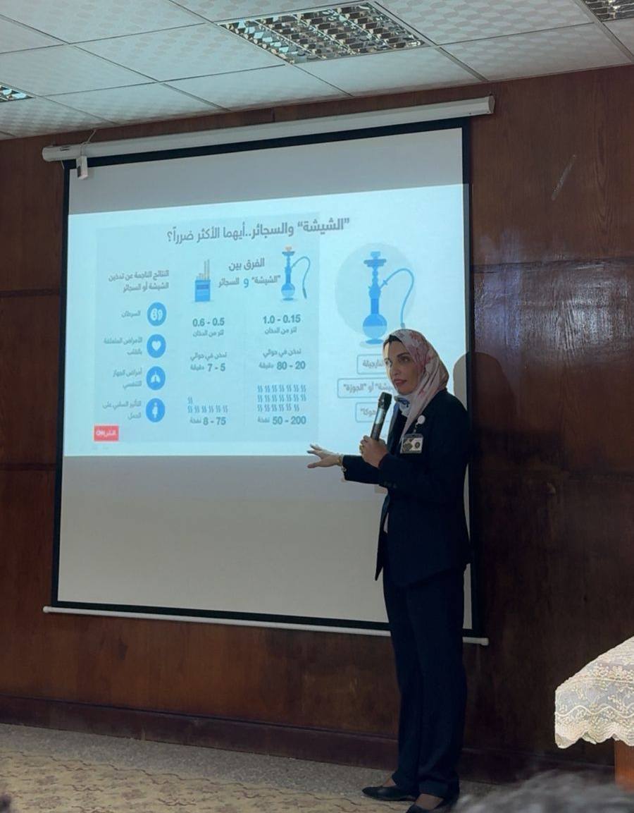 و ا.د / عواطف حسن قاسم وكيل الكلية لشئون التعليم و الطلاب تم انعقاد ندوه توعويه لطلاب المستويات الأربعة من الوافدين بعنوان أضرار التدخين تضمنت التعريف بالتدخين و أنواعه و اضراره و كيفيه الوقايه منها