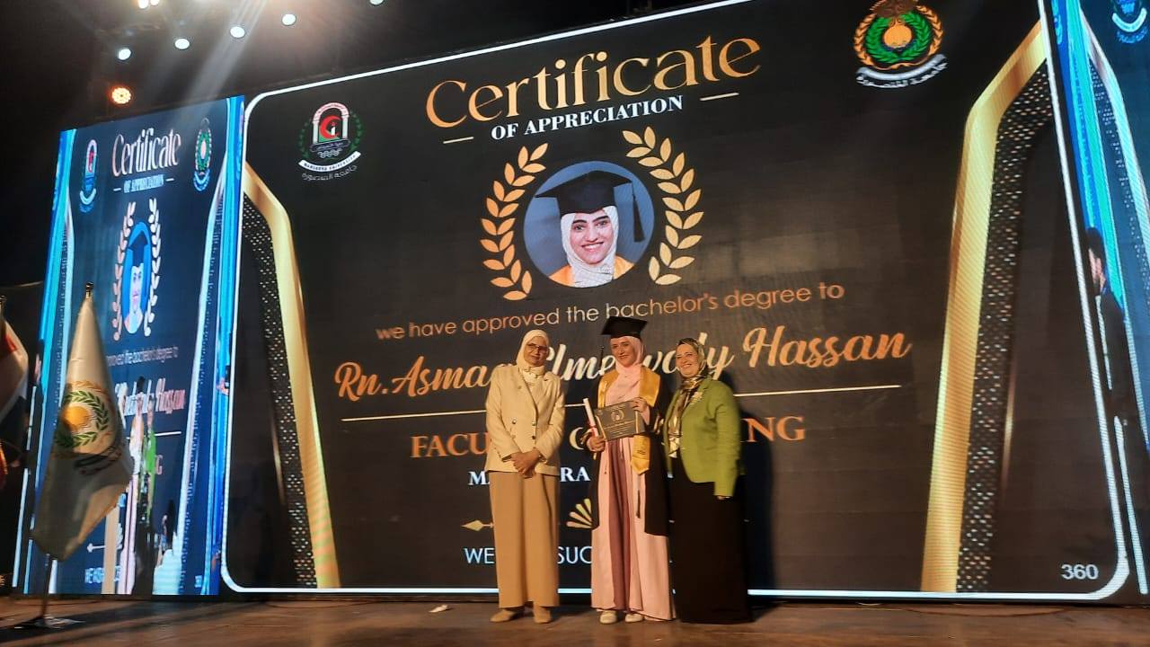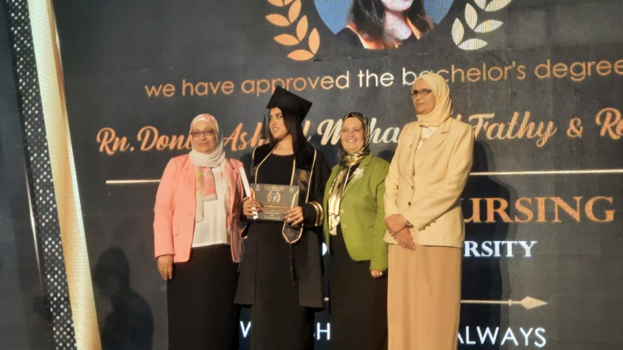 The Faculty of Nursing at Mansoura University witnessed a special day filled with pride and honor, as the graduation ceremony for the 27th graduating class was held amidst an atmosphere of joy celebrating the fruits of their hard work and dedication throughout their years of study. The ceremony began with the national anthem, a recitation from the Holy Quran, and speeches from the Dean and academic leaders, who expressed their pride in the students' academic and ethical excellence. They emphasized the pioneering role of the Faculty of Nursing in preparing qualified nursing professionals who meet the demands of the job market and serve the community. Professor Abeer Mohamed Zakaria, Dean of the Faculty, expressed her pride in the 27th graduating class in her speech, affirming that the Faculty of Nursing is always proud of its distinguished students who represent a shining example of commitment and dedication. She encouraged them to continue on the path of success and contribute to serving the healthcare system and the community.