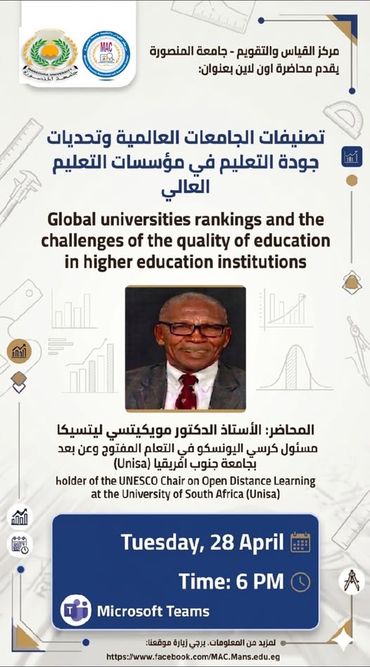 📢 The Measurement and Evaluation Center at Mansoura University announces, as part of the resumption of its scientific activities, the organization of an international online lecture entitled: