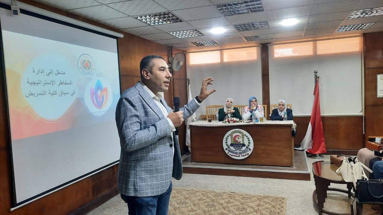 ندوة تعريفية بعنوان إدارة الازمات والكوارث والحد من المخاطر بقاعة المؤتمرات بكلية التمريض -جامعه المنصوره