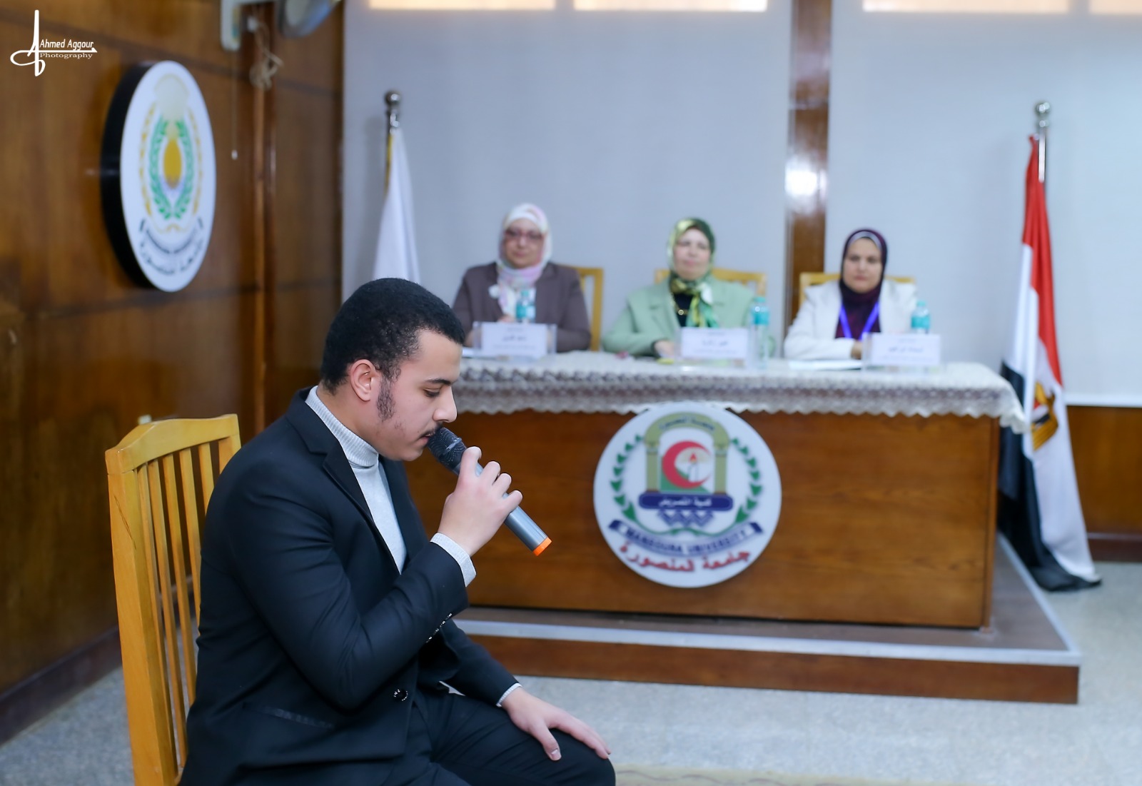 استُهلت فعاليات الجلسة الافتتاحية بتلاوة آيات من الذكر الحكيم، تلاها الطالب/ محمد جمال، أعقبها كلمات السادة القيادات الأكاديمية.