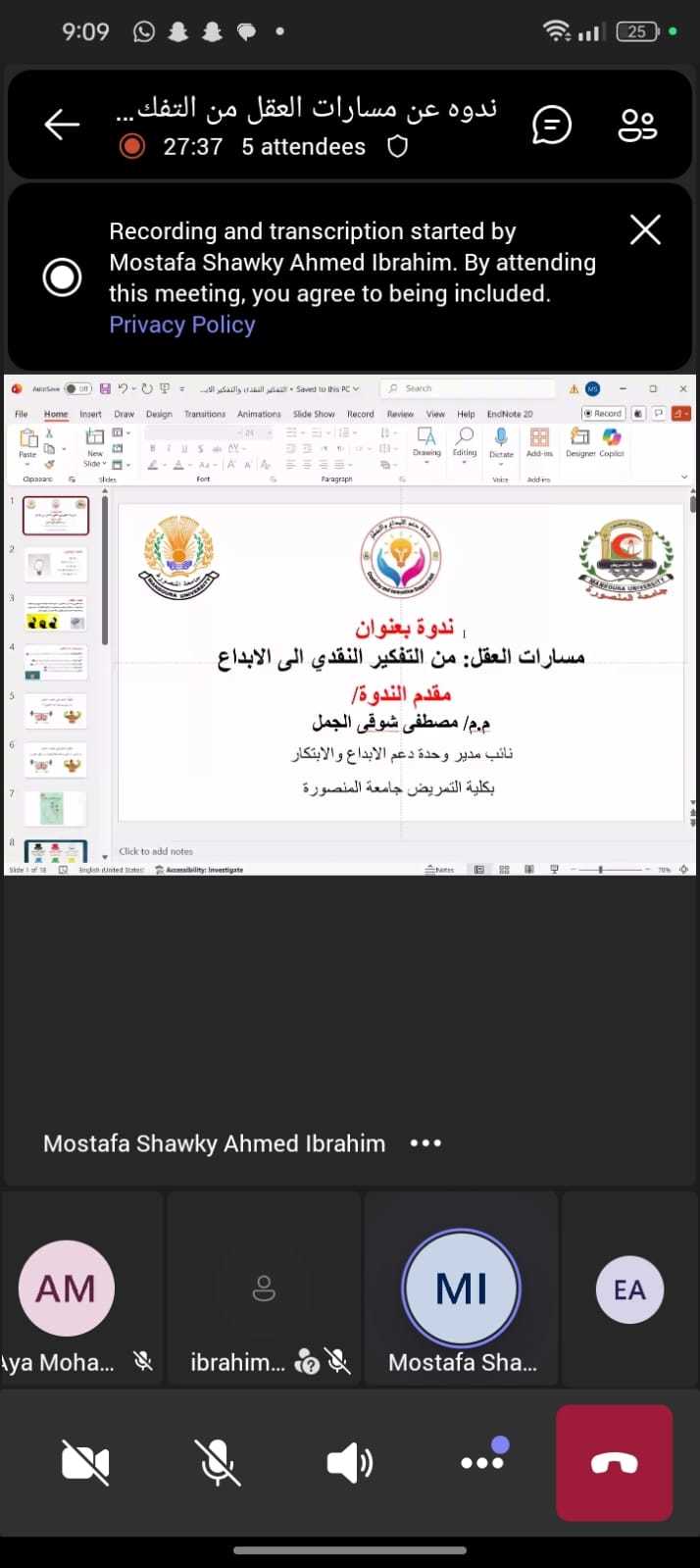 ندوة بعنوان مسارات العقل من التفكير النقدي الي التفكير الإبداعي