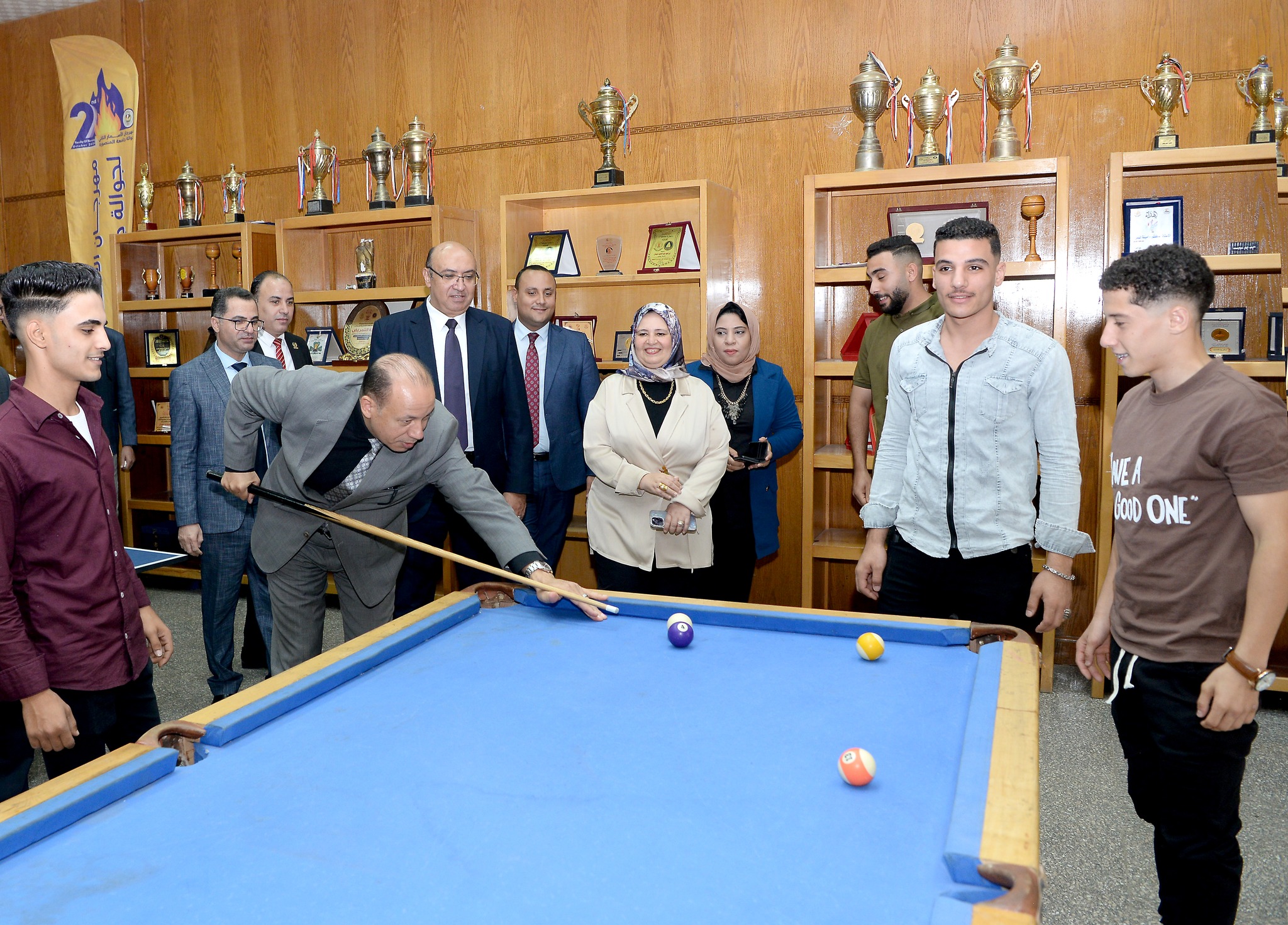 واستهل رئيس الجامعة زيارته بتفقّد معرض الأنشطة الطلابية الذي نظمته إدارة رعاية الطلاب بالكلية، حيث اطّلع على ما تضمنه من أعمال وأنشطة متنوعة تعكس مواهب الطلاب وإبداعاتهم، وأشاد بجهودهم في إثراء الحياة الجامعية.