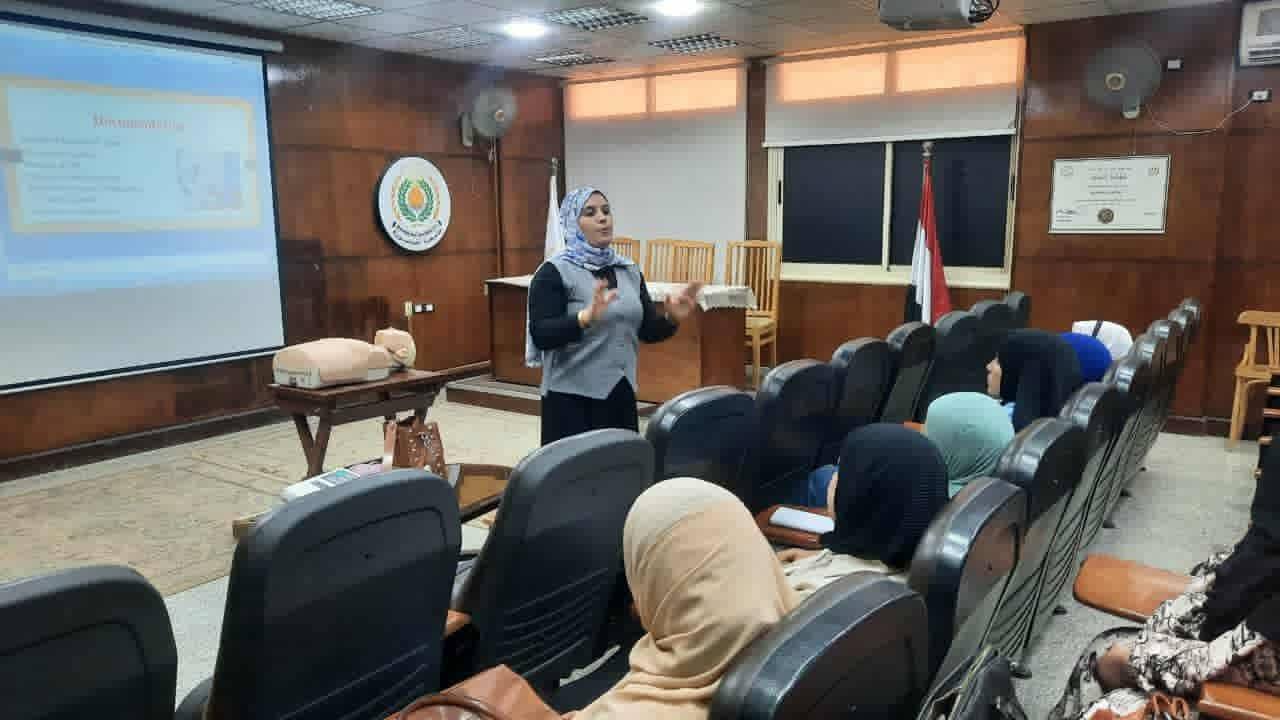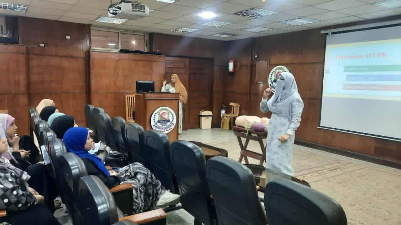 تنفيذ برنامج التدريبي عن الاسعافات الاولية لهيئه التمريض بمستشفي الباطنه التخصصي( المجموعة الثانية ) ضمن انشطة مركز الخدمة العامة تحت رعاية الاستاذ الدكتور/شريف خاطر - رئيس جامعة المنصورة و الاستاذ الدكتور/ محمد عبد العظيم - نائب رئيس الجامعة لشئون خدمة المجتمع وتنمية البيئة وتحت ريادة الأستاذ الدكتور/ عبير زكريا - عميد كلية التمريض و الأستاذ الدكتور/ فاطمه الامام - وكيل كلية التمريض لشئون خدمة المجتمع و تنمية البيئة والاستاذ الدكتور/ احلام جوده - مدير مركز الخدمه العامة والاستاذ الدكتور/ اسماء ابراهيم ابو سعده - رئيس قسم تمريض العنايه الحرجه والطوارئ عقد يوم الثلاثاء الموافق ٢٠٢٥/١٠/١٤ برنامج تدريبي عن الاسعافات الاولية لهيئه التمريض بمستشفي الباطنه التخصصي ( المجموعة الثانية) بقاعة المؤتمرات بالكلية وتم التدريب علي الانعاش القلبي الرئوى المتقدم وقد قام بالتدريب . د / ايات فهمى - المدرس المساعد بقسم تمريض العناية الحرجة والطوارئ - د/رحاب فاضل - المدرس المساعد بقسم تمريض العنايه الحرجه والطوارئ