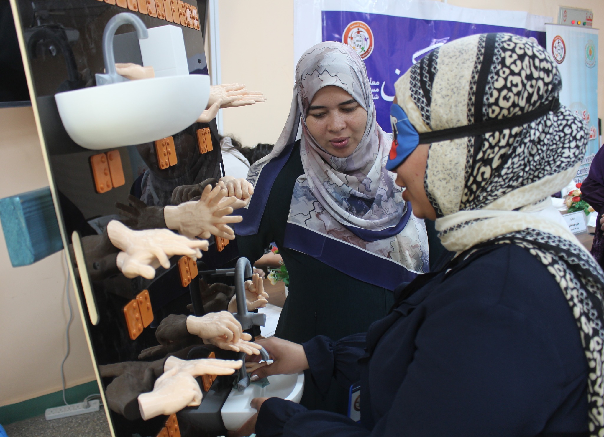 وفي هذا الإطار، انعقدت ورشتان توعويتان بعنوان: "نظافة وغسل الأيدي" و"الإسعافات الأولية"، بهدف تعزيز الوعي الصحي وتنمية المهارات الحياتية لدى الطلاب من ذوي الإعاقة، وترسيخ الممارسات السليمة للحفاظ على الصحة العامة والتعامل مع المواقف الطارئة.