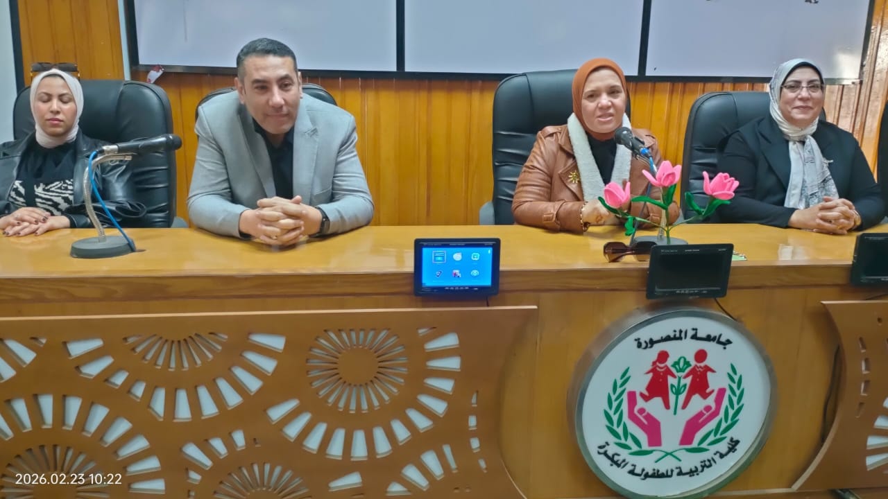 نظم قطاع خدمة المجتمع وتنمية البيئة بكلية التربية للطفولة المبكرة استضافة ثالث ورشة عمل من سلسلة ورش عمل الأزمات التي تنظمها الإدارة العامة للإدارة الاستراتيجية بجامعة المنصورة بعنوان (خطط وإجراءات إدارة الأزمات والكوارث) يوم الإثنين الموافق 23/2/2026 بقاعة المؤتمرات بكلية التربية للطفولة المبكرة