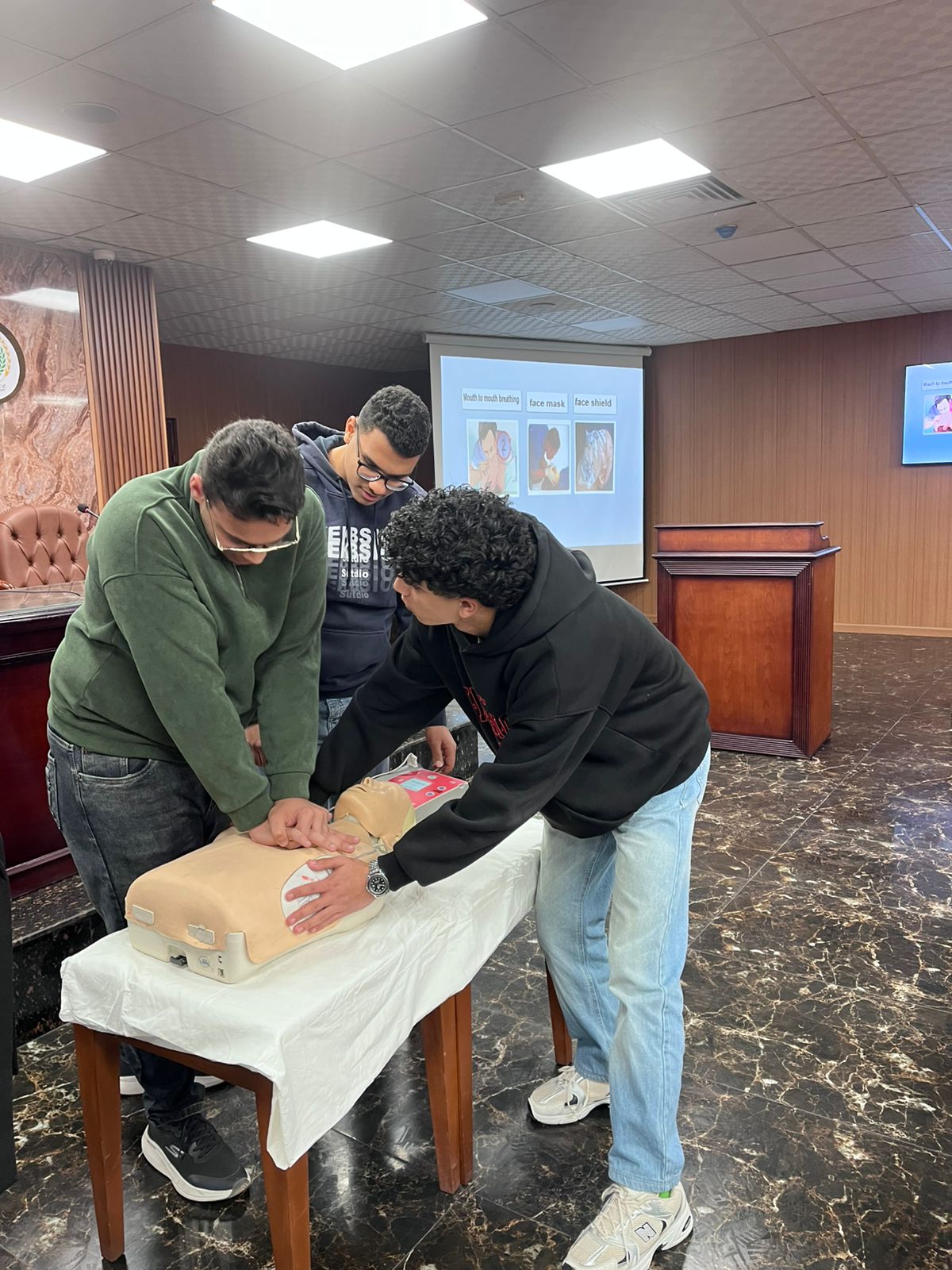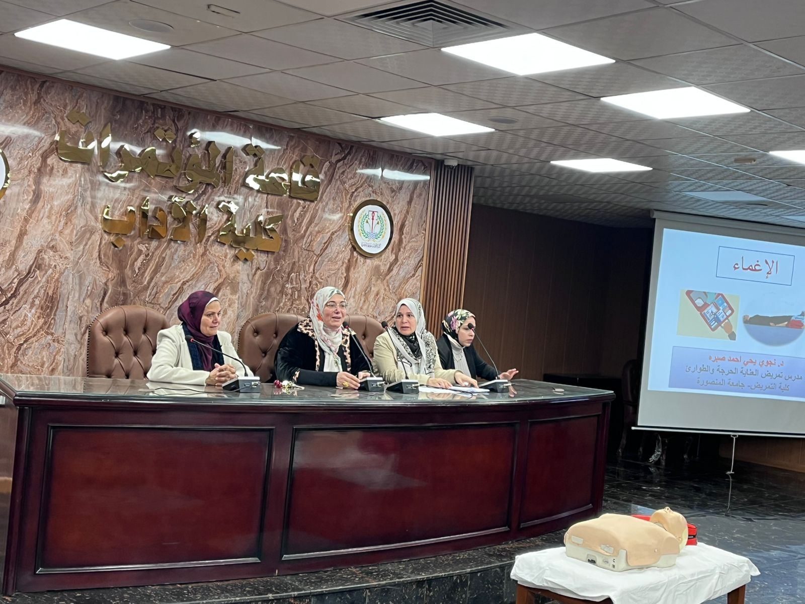 وفي إطار الدور المجتمعي والتوعوي للكلية، أُقيمت ندوة تثقيفية بعنوان "الإسعافات الأولية" لطلاب كلية الآداب جامعة المنصورة، بهدف نشر الوعي الصحي وتعزيز مهارات التعامل السريع مع الحالات الطارئة، بما يسهم في إنقاذ الأرواح والحد من المضاعفات.