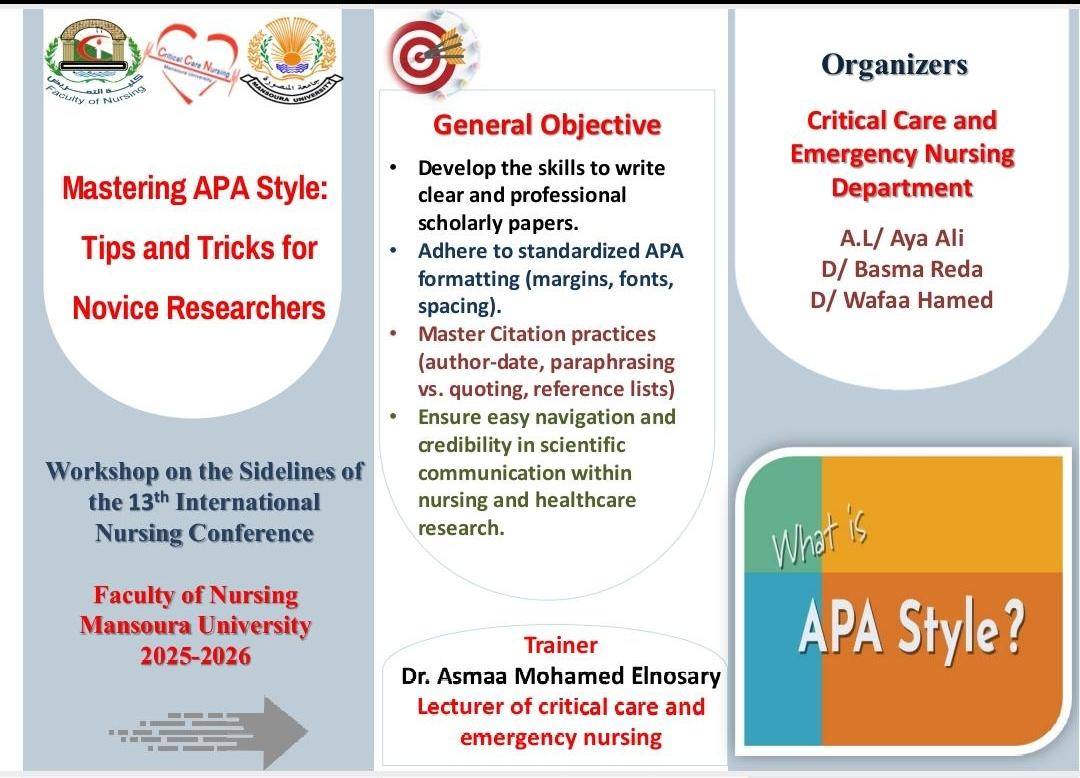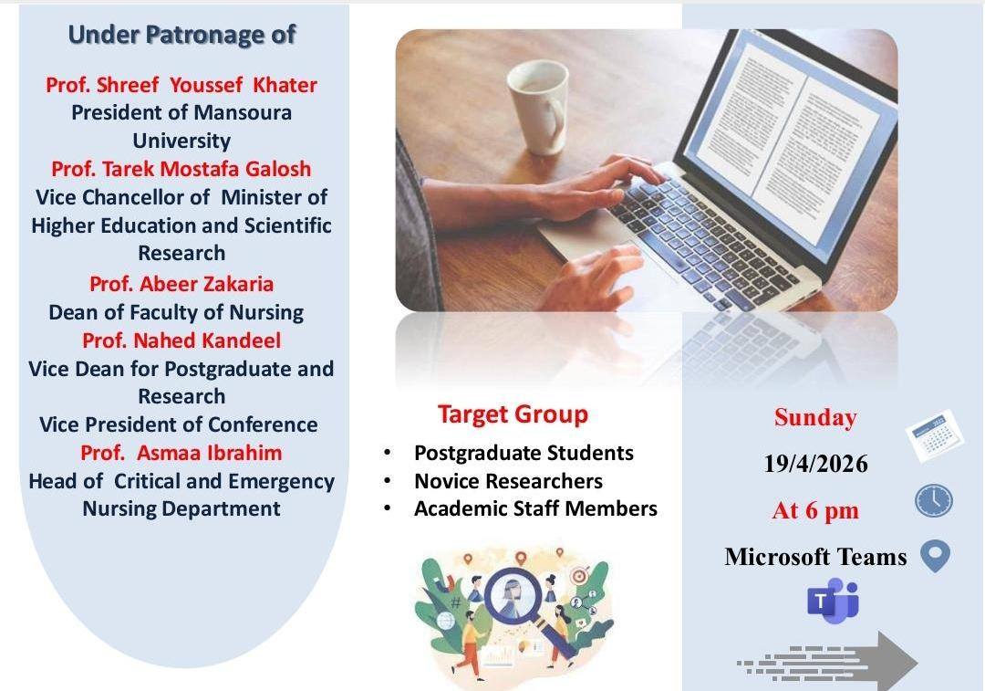 تعلن كلية التمريض جامعه المنصورة عن عقد ورشة عمل بعنوان