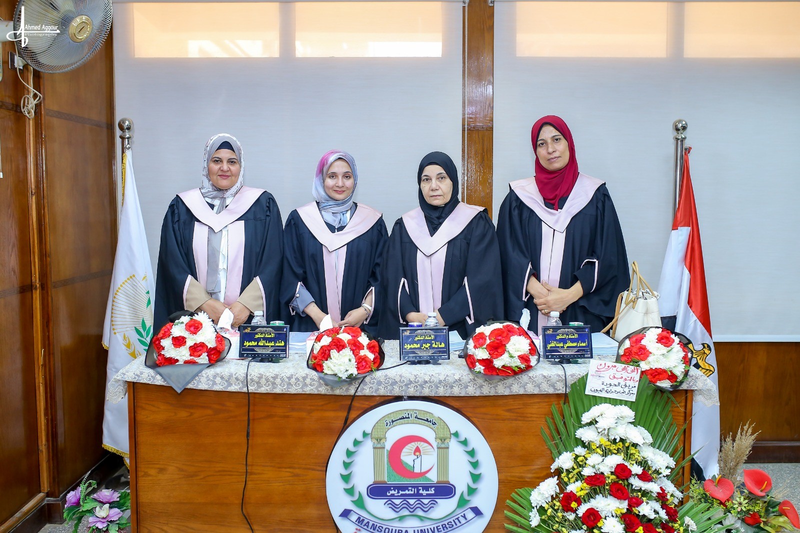 بقاعة المؤتمرات بكلية التمريض جامعة المنصورة في تمام الساعة الحادية حاديةعشر ظهرا وحصلت الطالبه علي تقدير امتياز وعقبال جميع طلاب الدراسات العليا