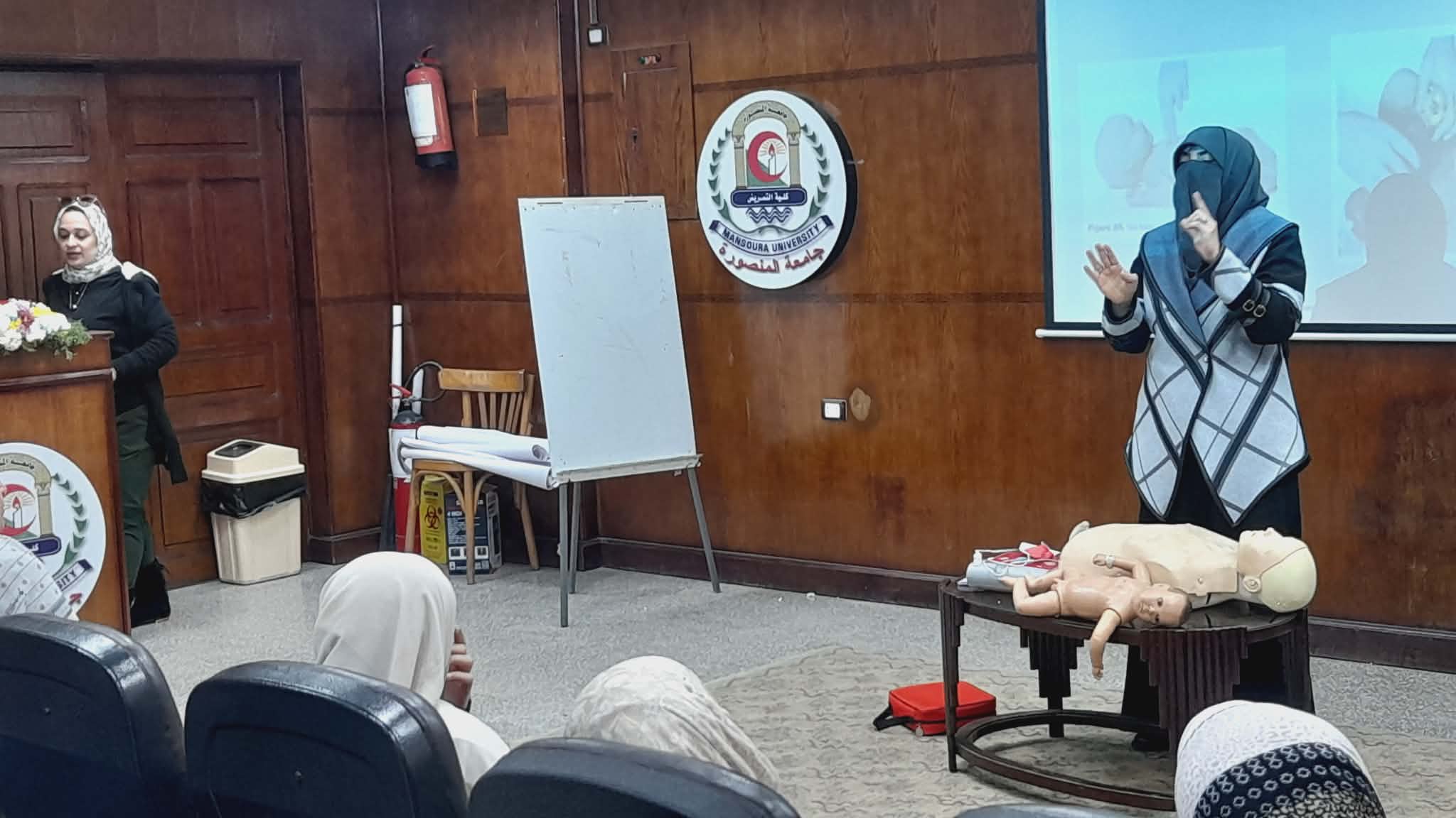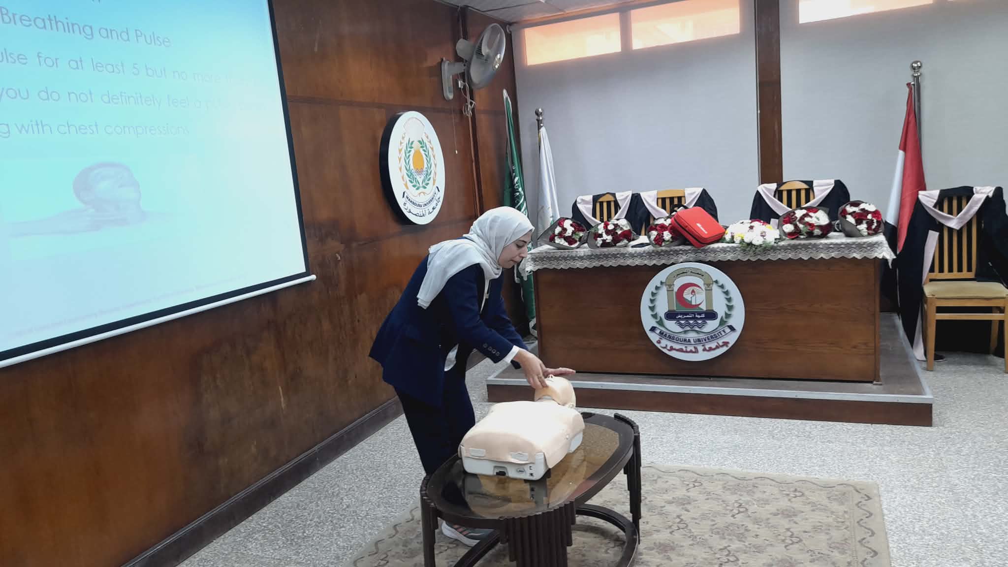 تدريب المجموعه الثانيه من هيئة التمريض بمستشفى الباطنه التخصصي بجامعة المنصورة على "الانعاش القلبي الرئوي"