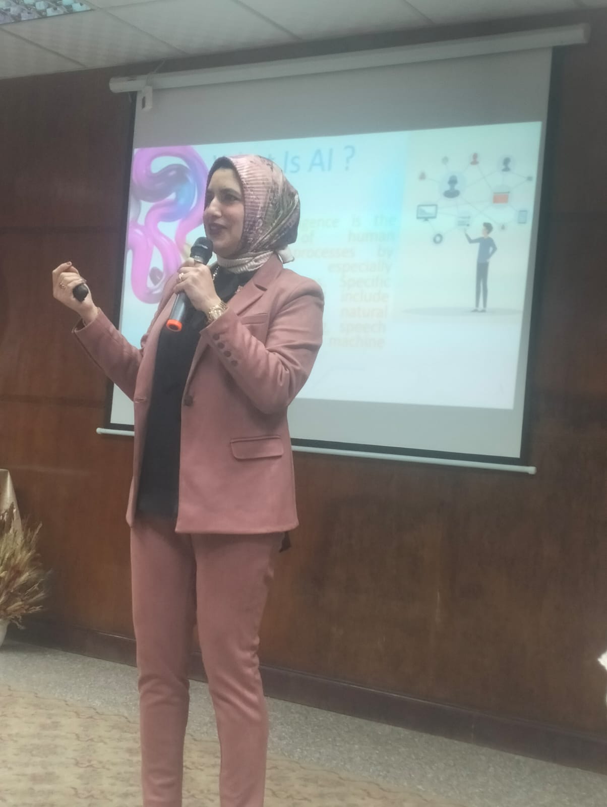 The seminar was led by Prof. Dr. Abeer Mohamed Zakaria, Dean of the Faculty of Nursing, and delivered by Dr. Nesma El-Sayed Ibrahim, Lecturer at the Department of Information Systems, Faculty of Computers and Artificial Intelligence.