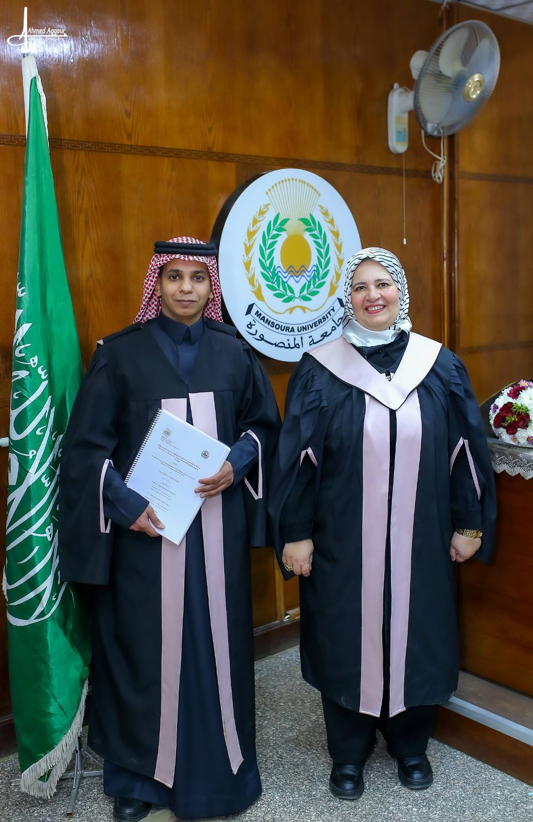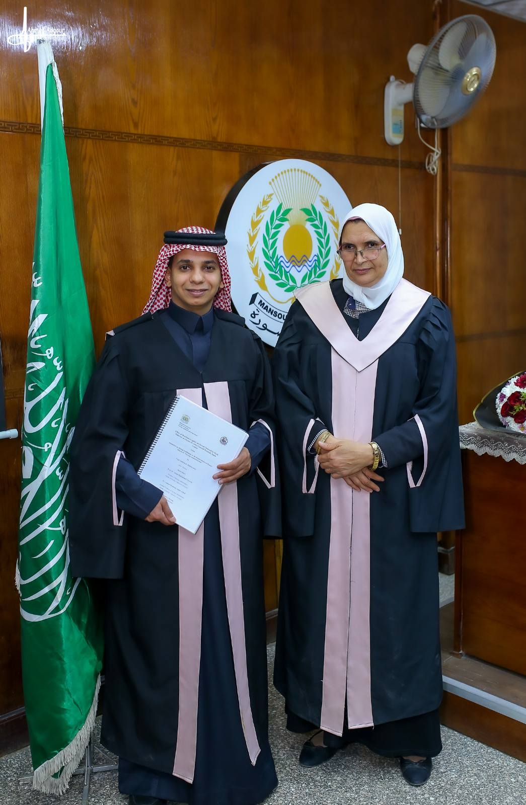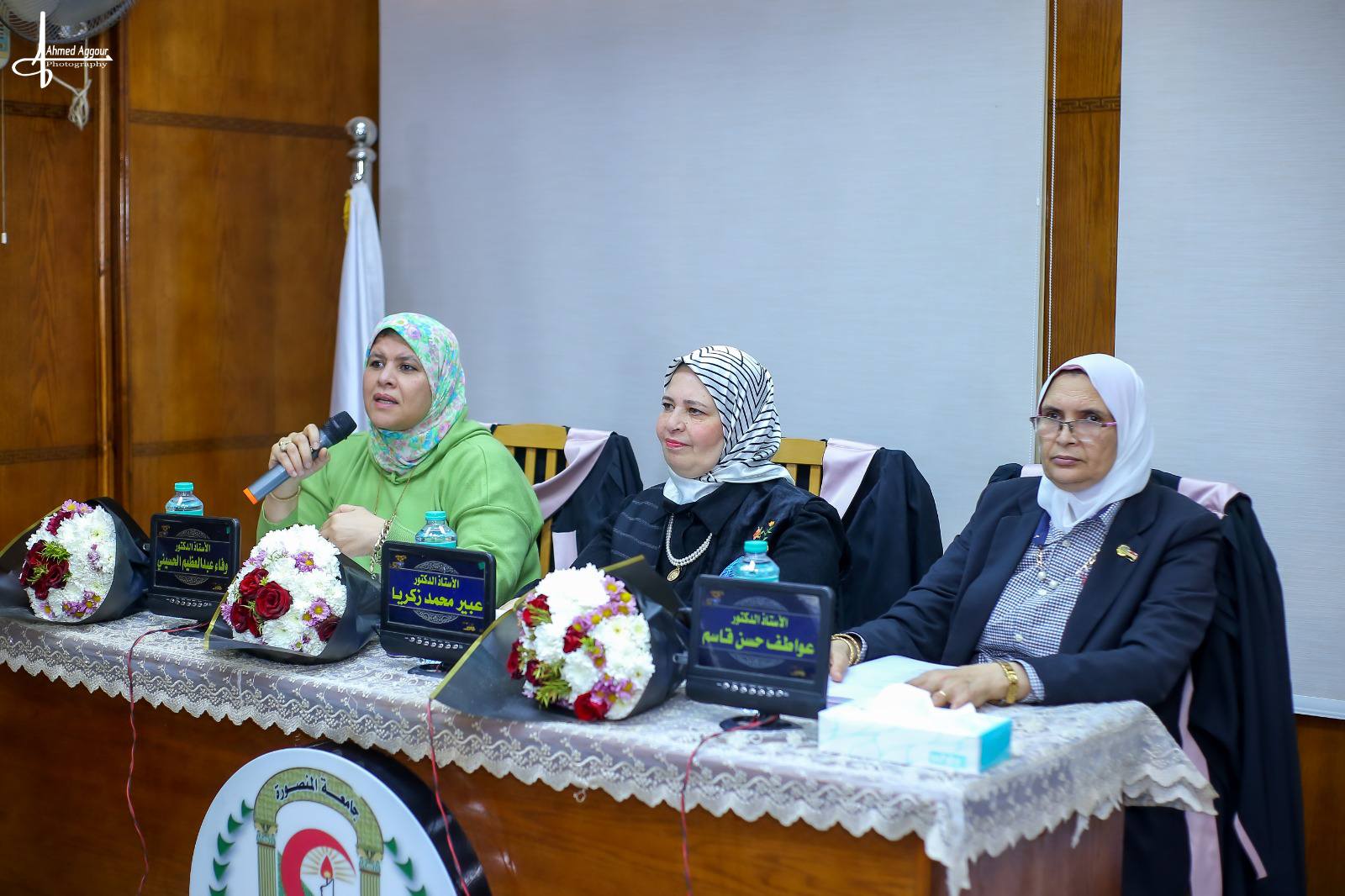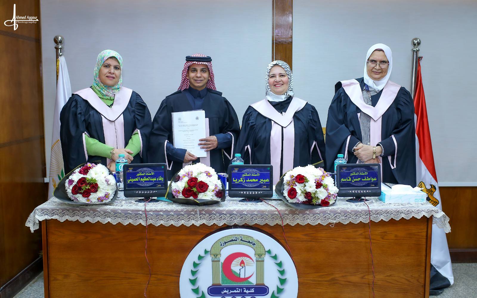 Prof. Dr. Nahed Attia Kandil, Vice Dean for Graduate Studies and Research, and Assist. Prof. Dr. Wafaa Hamed El-Shafei, International Students Coordinator, on the successful defense of the following master's theses:
