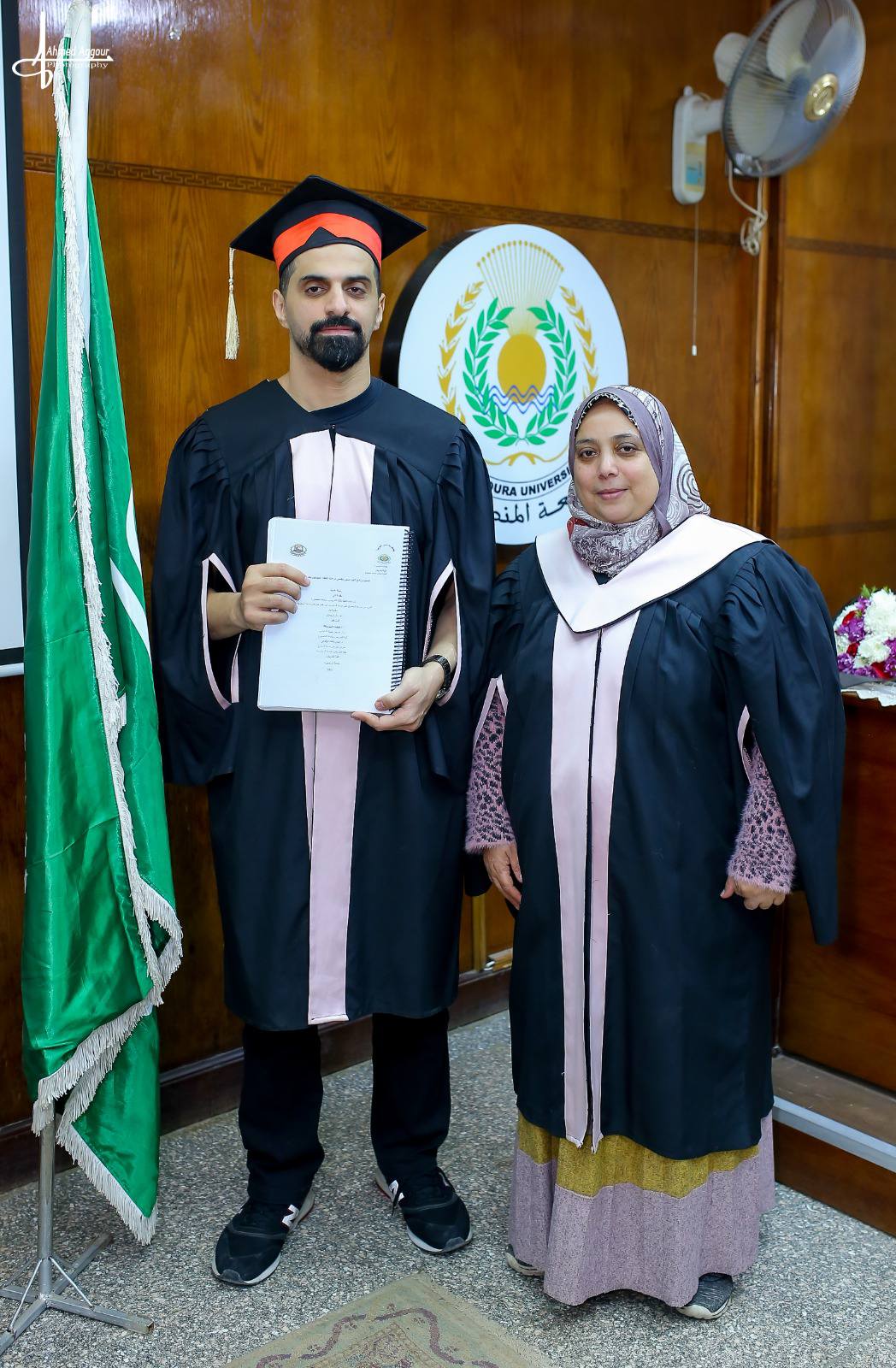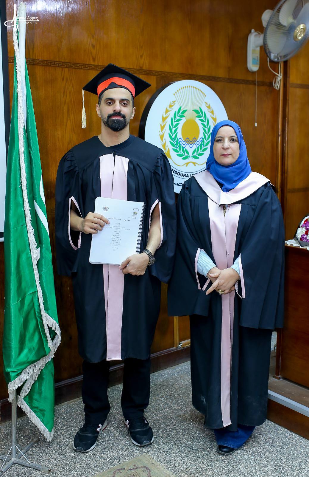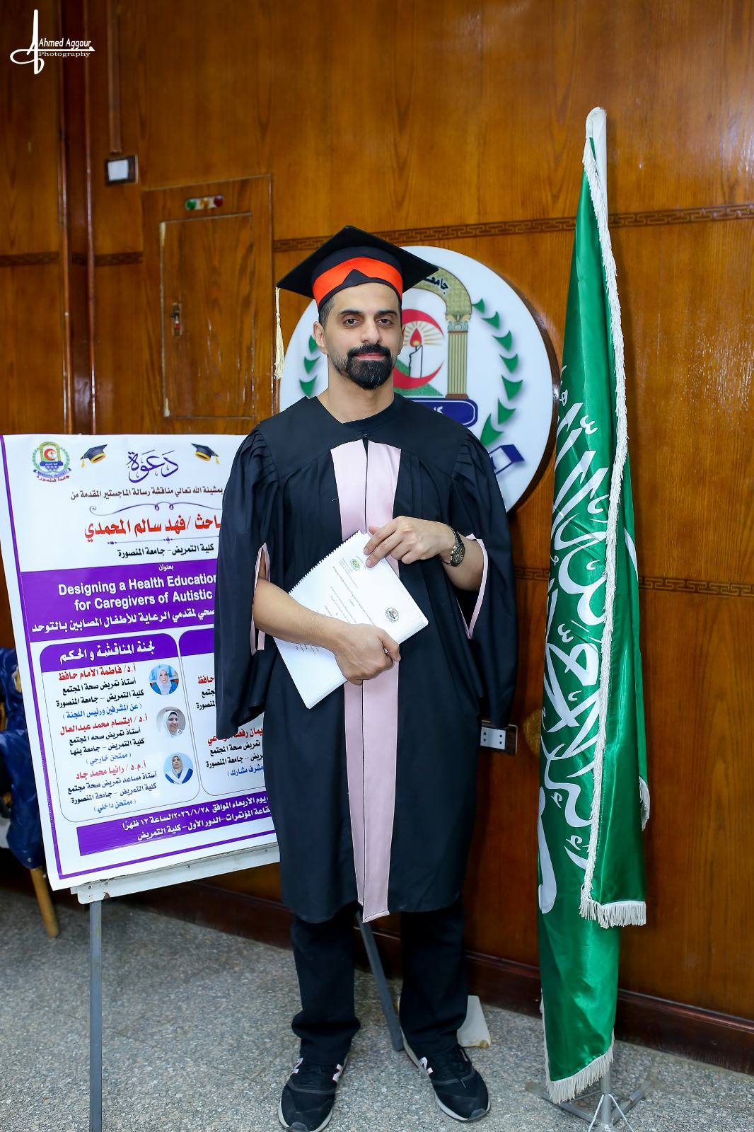 Special congratulations from the International Students Unit, led by Prof. Dr. Abeer Mohamed Zakaria, Dean of the Faculty of Nursing, Mansoura University, Prof. Dr. Nahed Attia Kandil, Vice Dean for Graduate Studies and Research, and Assist. Prof. Dr. Wafaa Hamed El-Shafei, International Students Coordinator, on the successful defense of the following master's theses: Master's Thesis in Community Health Nursing by researcher Fahad Salem Al-Muhammadi: Designing a health education program for caregivers of Autistic children