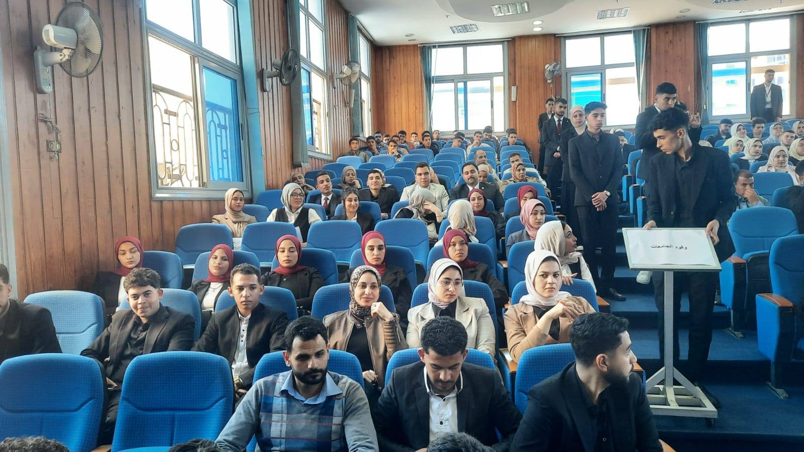 A delegation of students participated in the conference with a series of presentations, and the student coordinator, Mr. Khaled Salem, was honored.